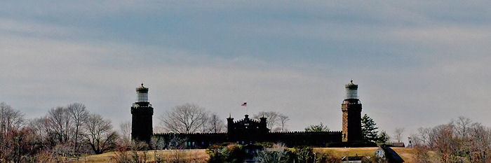 Homes on the hillside below the Twin Lights of Navesink make the lighthouse difficult to photograph. Much better opportunities are available from the road leading out to Sandy Hook if you have a long telephoto.